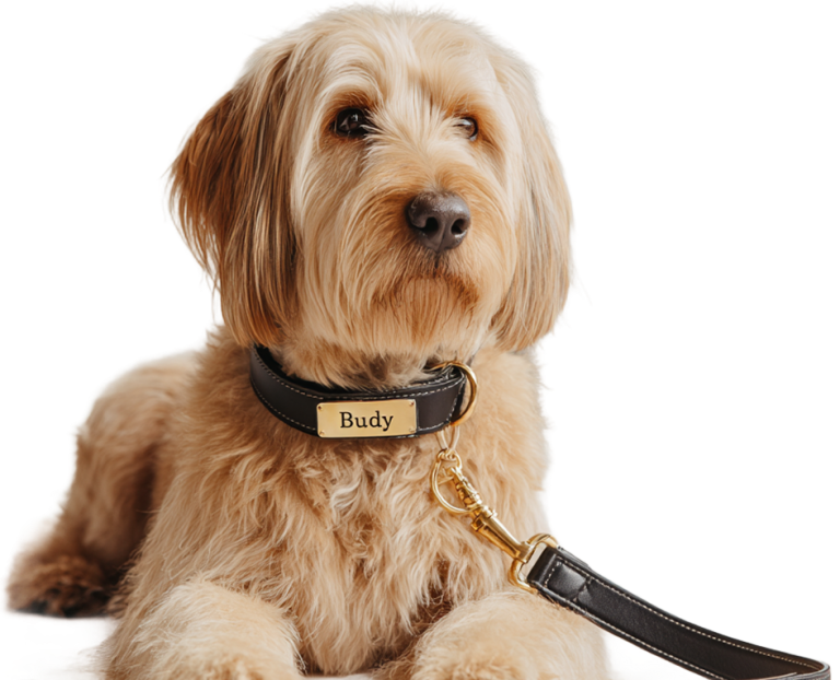 Handcrafted collars, harnesses, coats, and accessories – custom-sized, with premium materials and finishes.